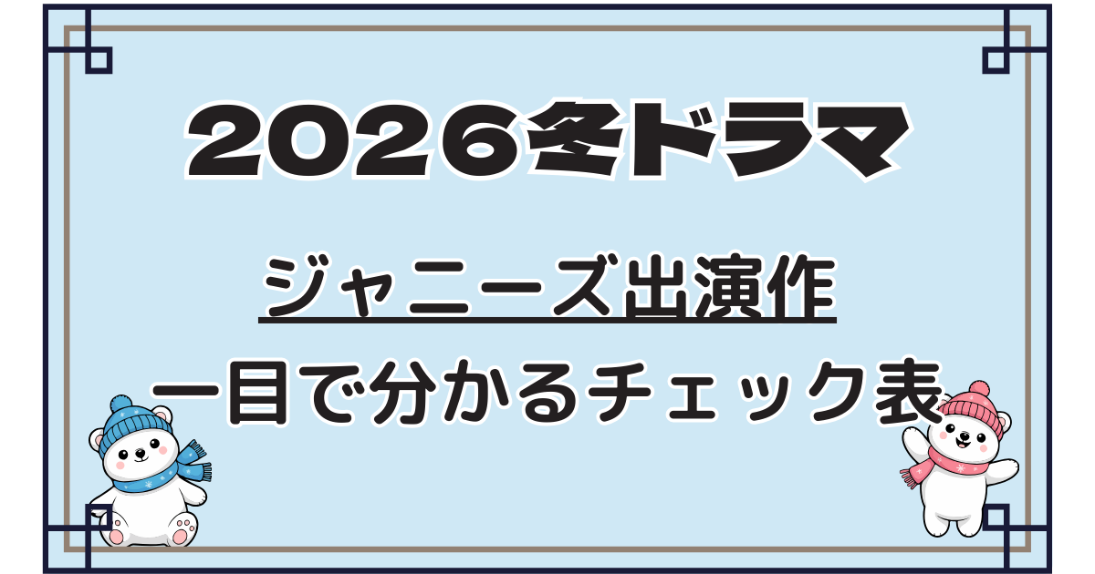 2026年の冬クールは、STARTO ENTERTAINMENT(旧ジャニーズ系)の出演ラッシュでまさに冬ドラマ=推し活シーズンなんですよね☃️✨